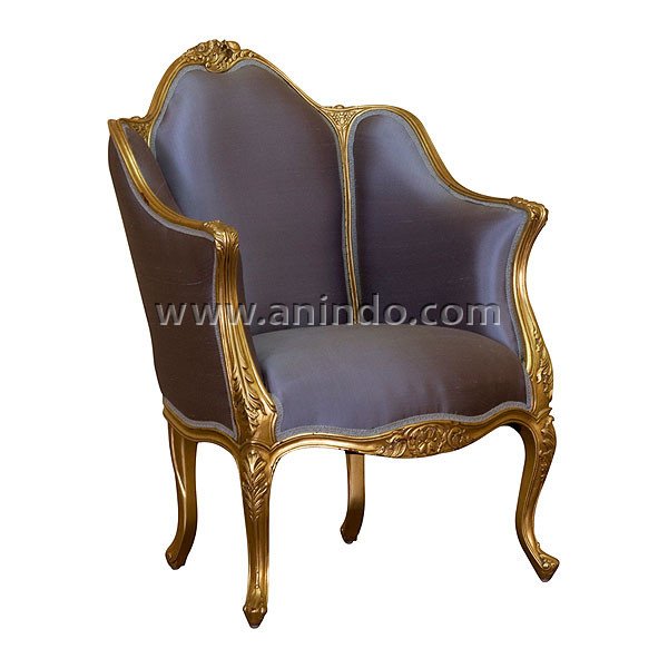 Our silk arm chair is made of solid mahogany wood in gold leaf finish. Upholstered in silk fabric.
