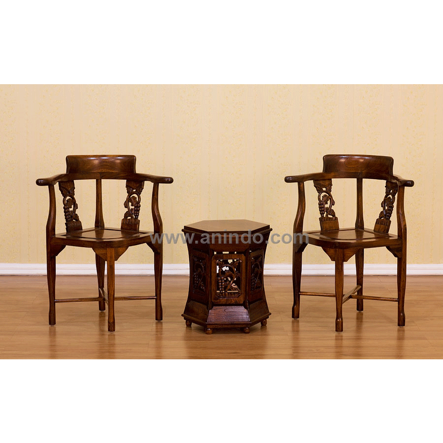 Set of terrace carved chair is made of solid mahogany wood pecan finish.