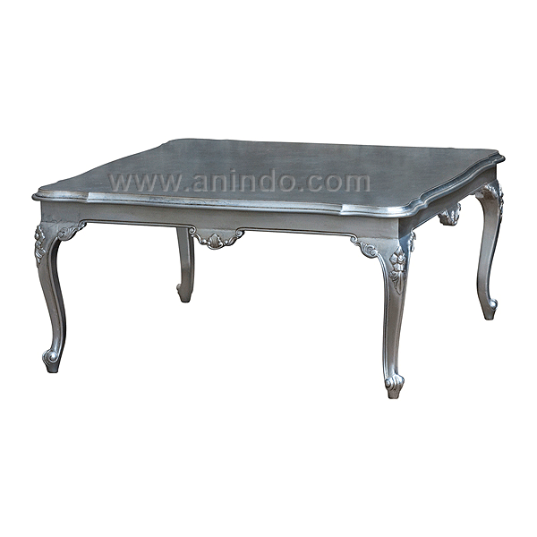 Silvia coffee table is made of solid mahogany wood in silver painted finish.
