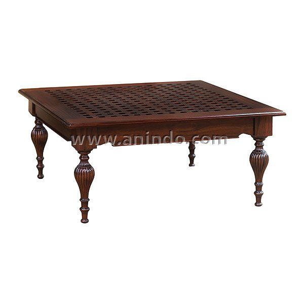 Azura square coffee table is made of solid mahogany wood in walnut finish.
