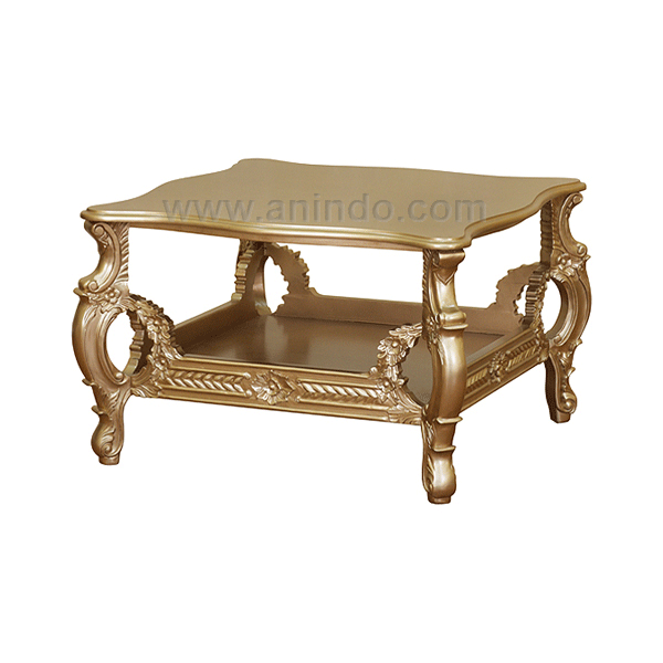 Our coffee table carving is made of solid mahogany wood in gold painted finish.