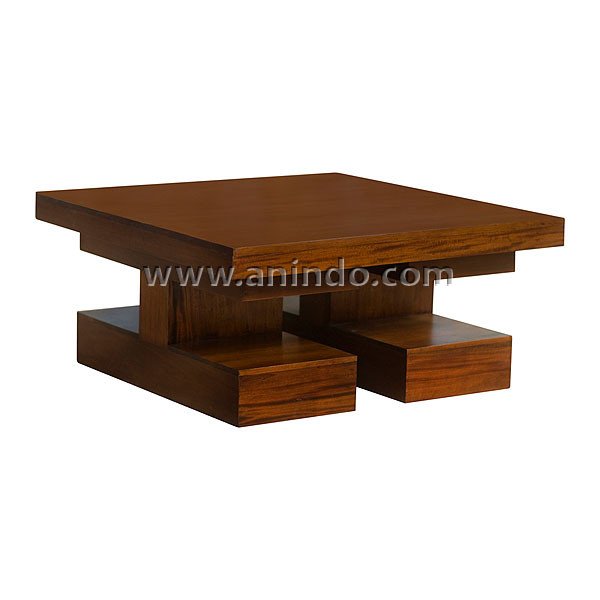 Azura square coffee table is made of solid mahogany wood in walnut finish.