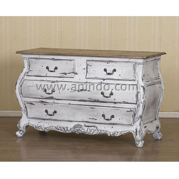 4 drawers commode is made of mahogany wood in white combined with silver painted finish.