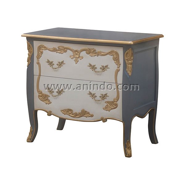 Our?2 drawers carved?commode is made of?mahogany?wood in white combined with silver ...