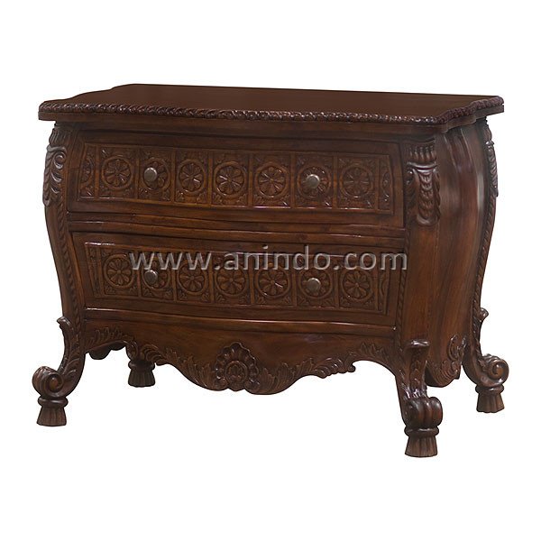 3 drawers commode with carving is made of mahogany wood in pecan ...