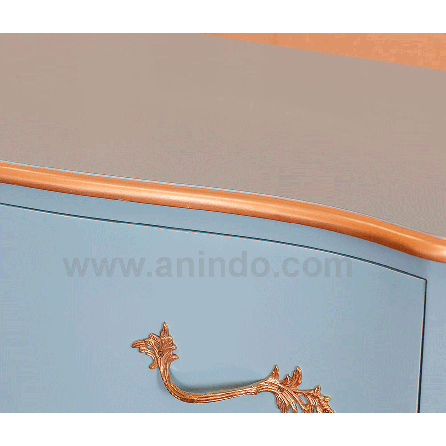 Our commode 3 drawers is made of mahogany wood in blue combined with floral gold painted ...