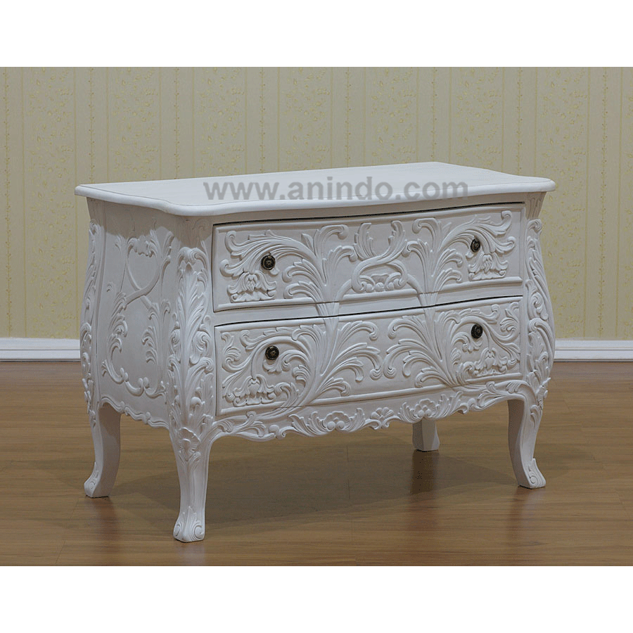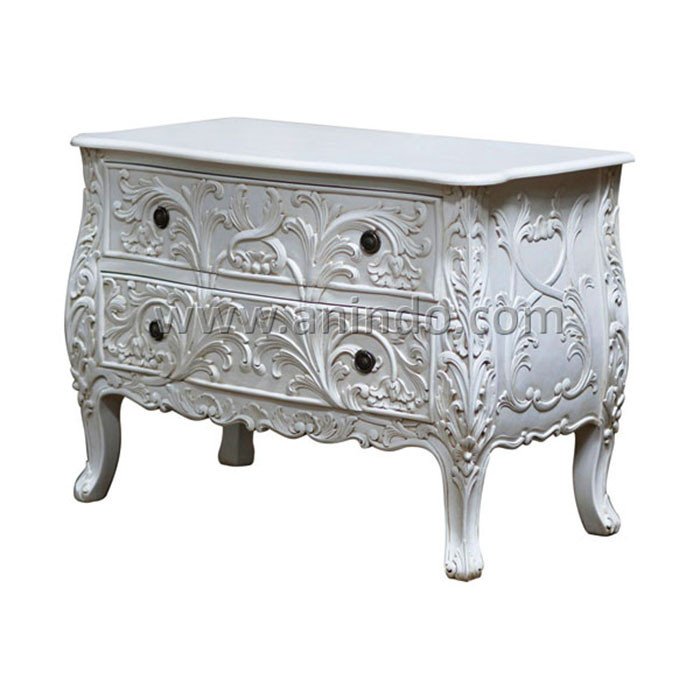 Our french carved commode is made of mahogany wood in white painted finish.