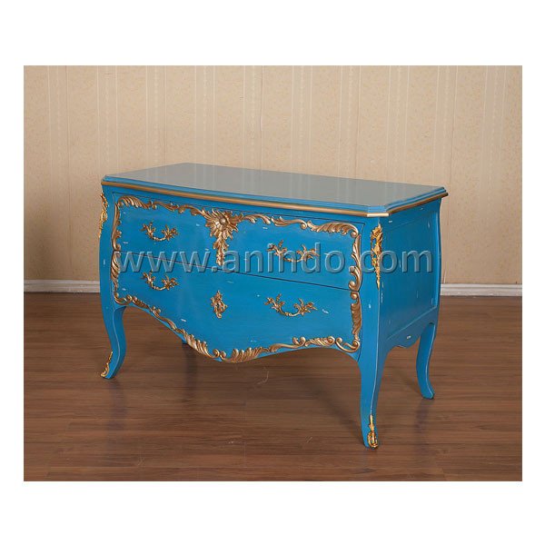 Commode 2 doors is made of mahogany wood in blue combined with floral gold painted ...