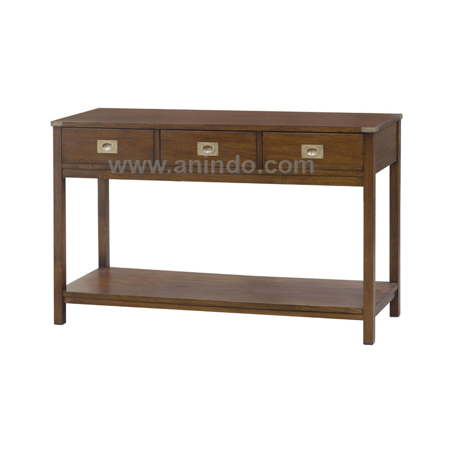 3 drawers console table is made of solid mahogany wood in walnut finish.