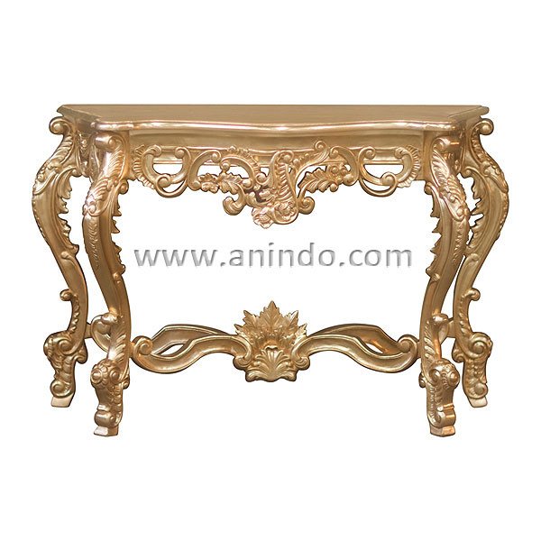 Our baroque console table is made of solid mahogany wood in gold leaf finish. With green ...