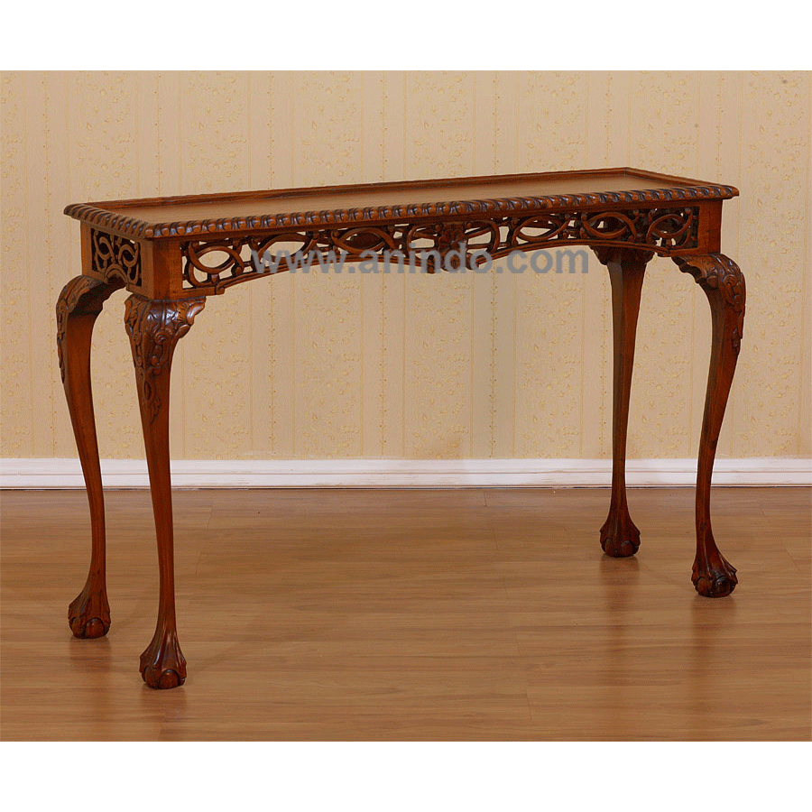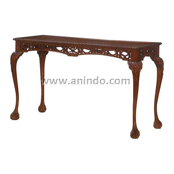 Chippendale console table is made of solid mahogany wood in walnut finish.