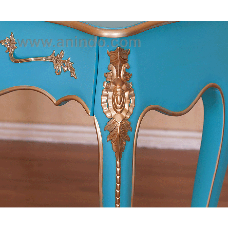Our?blue painted console is made of mahogany wood in blue with gold painted finish.