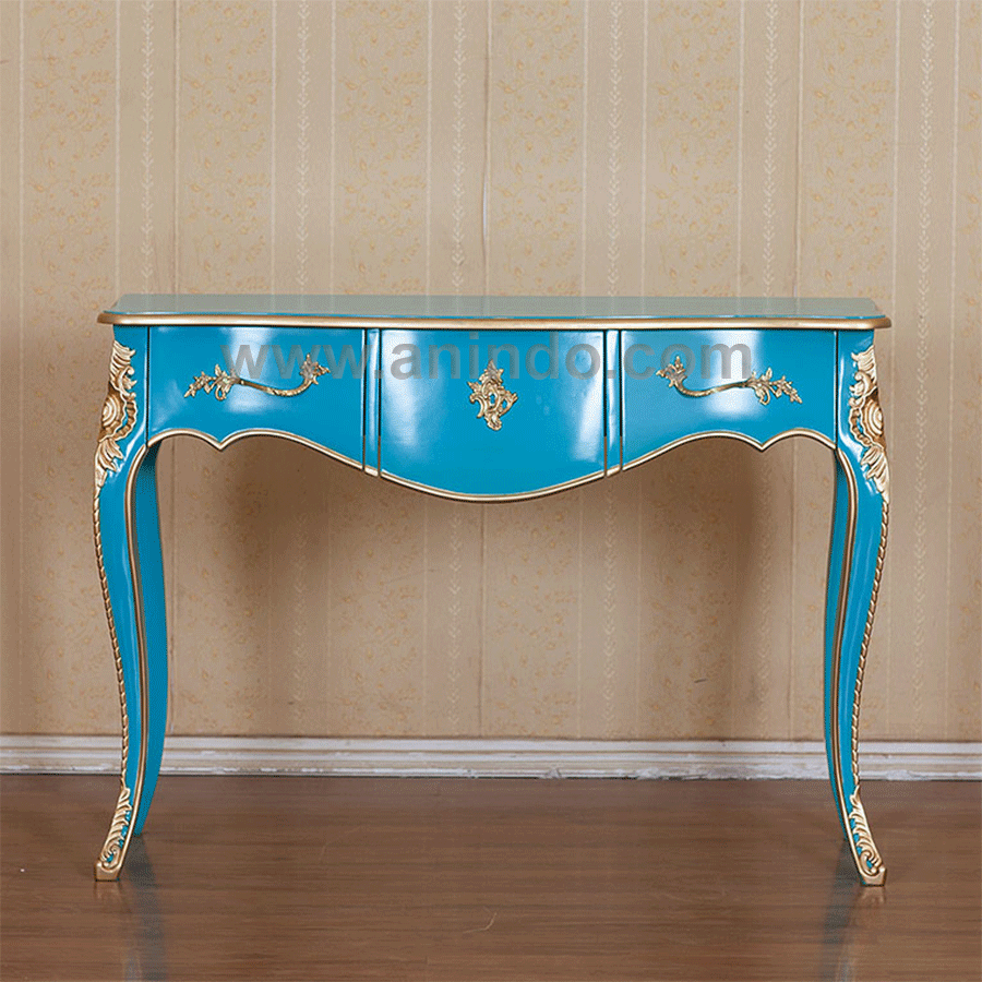 Our?3 drawers carved console is made of mahogany wood in?blue combine with gold?painted ...