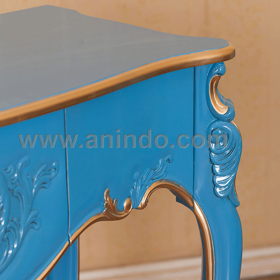 Our?3 drawers carved console is made of mahogany wood in?blue combine with gold?painted finish.