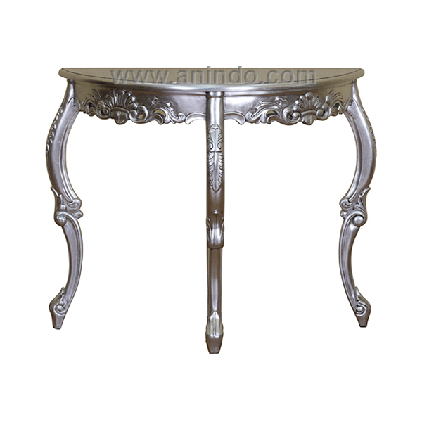 Our console carved 3 legs?is made of solid mahogany wood in silver leaf finish.