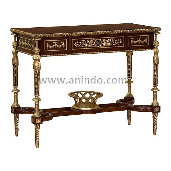 Our kartini console table is made of solid mahogany wood in red mahogany combined with gold leaf finish.