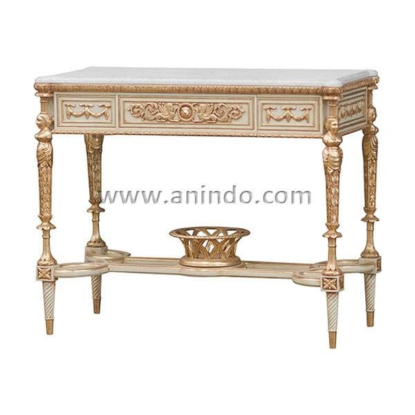 Our kerang carved console table is made of solid mahogany wood in white combine ...
