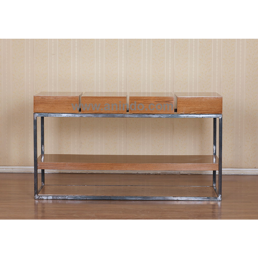 Modern console table 4 drawers 2 shelves is made of iron combined with mango veener.
