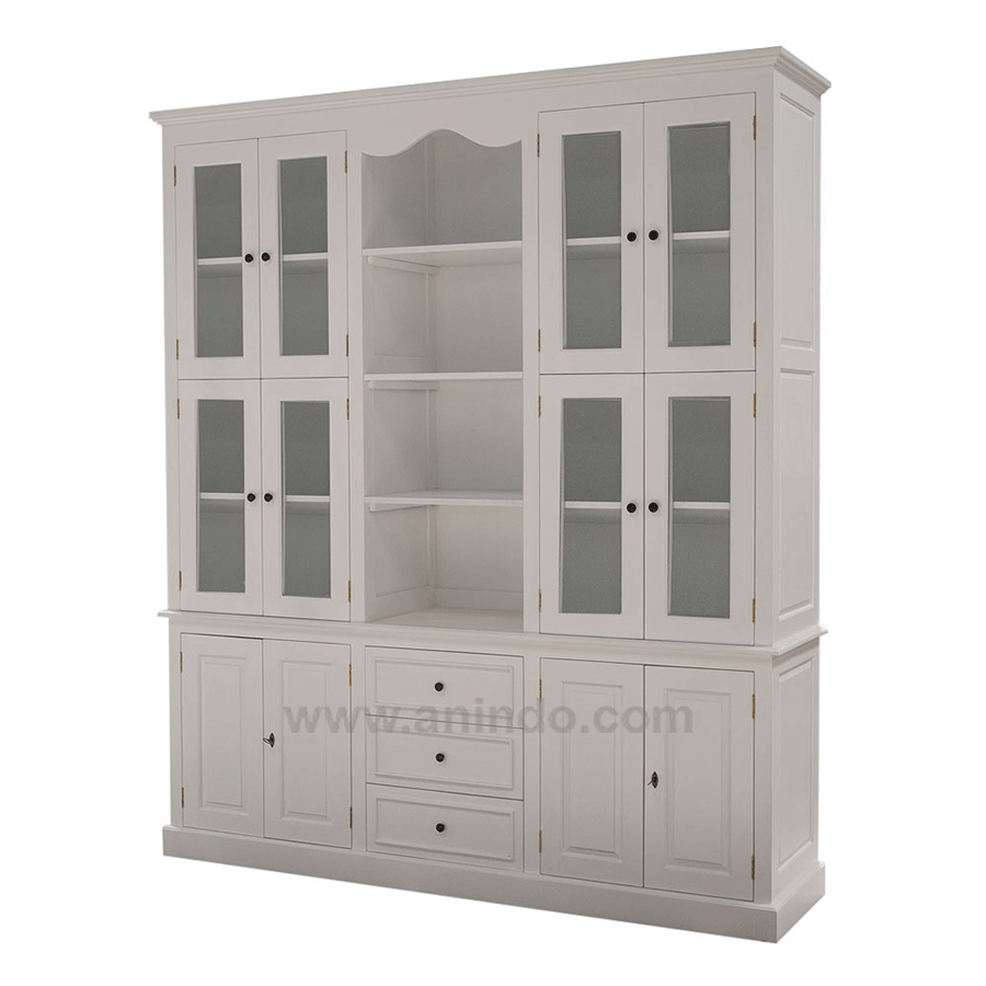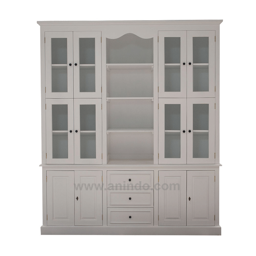 Our 12 doors display cabinet 3 drawers is made of mahogany wood in ivory painted?finish.