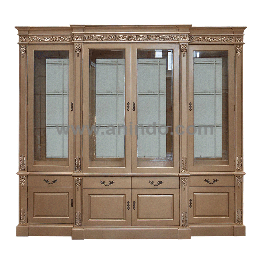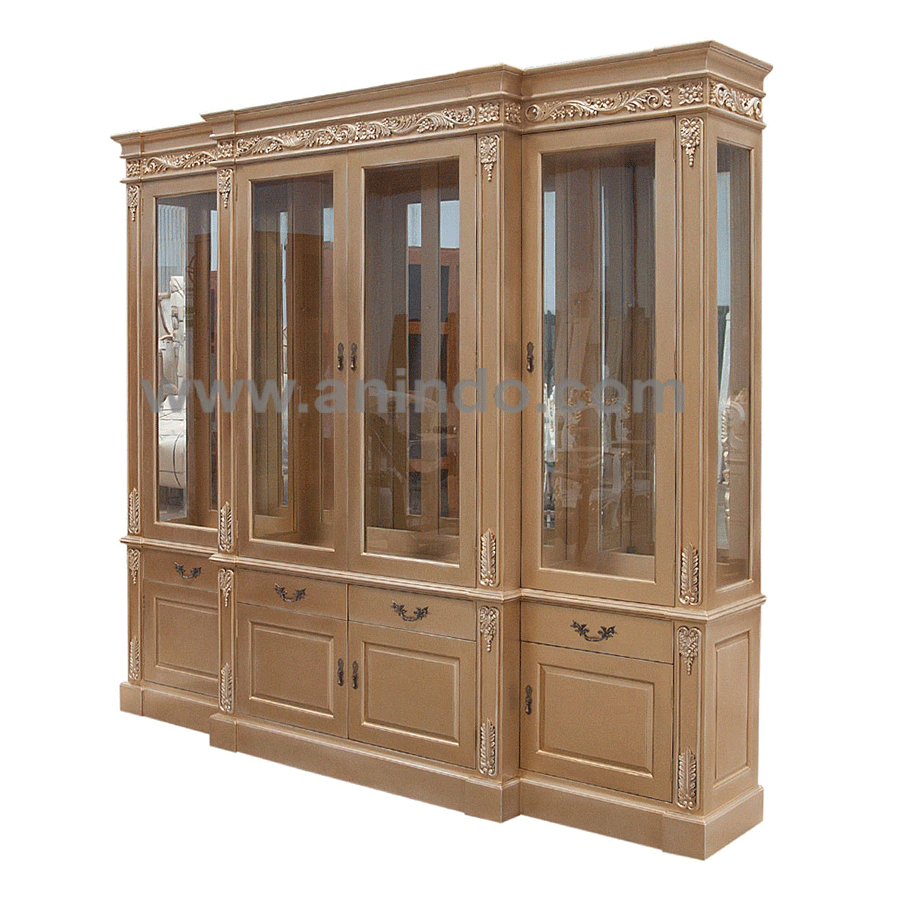 Victorian4 doors display cabinet is made of solid mahogany wood in walnut finish.