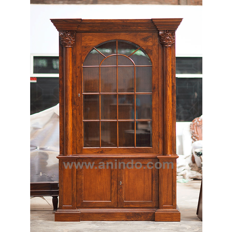 Display cabinet 2 doors is made of solid mahogany wood in walnut finish.