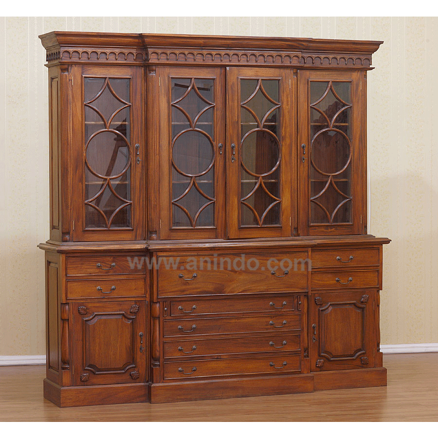 Victorian4 doors display cabinet is made of solid mahogany wood in walnut finish.