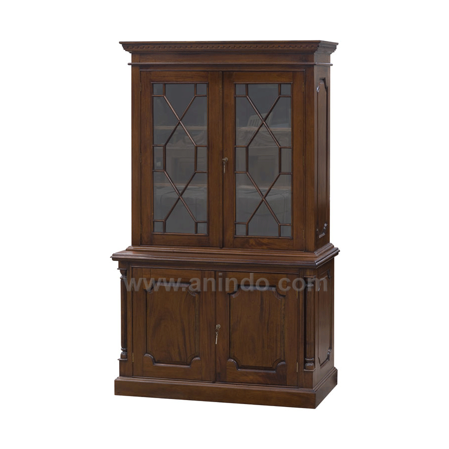 Display cabinet 2 doors is made of solid mahogany wood in walnut finish.
