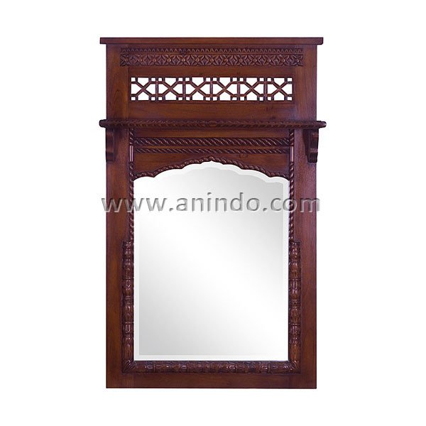 Javanese wall mirror is made of solid mahogany wood in walnut finish.