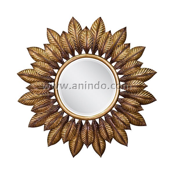 Flower wall mirror is made of solid mahogany wood in gold leaf finish.