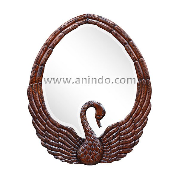 Swan wall mirror is made of solid mahogany wood in walnut finish.