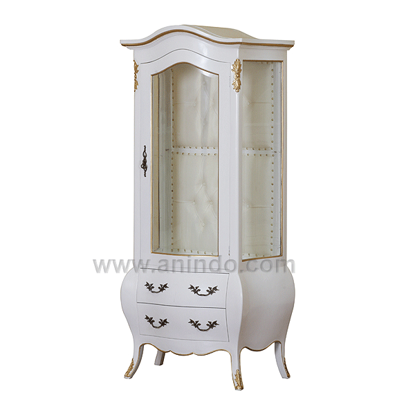 Our glass display cabinet is made of solid mahogany wood in?white combined with gold ...