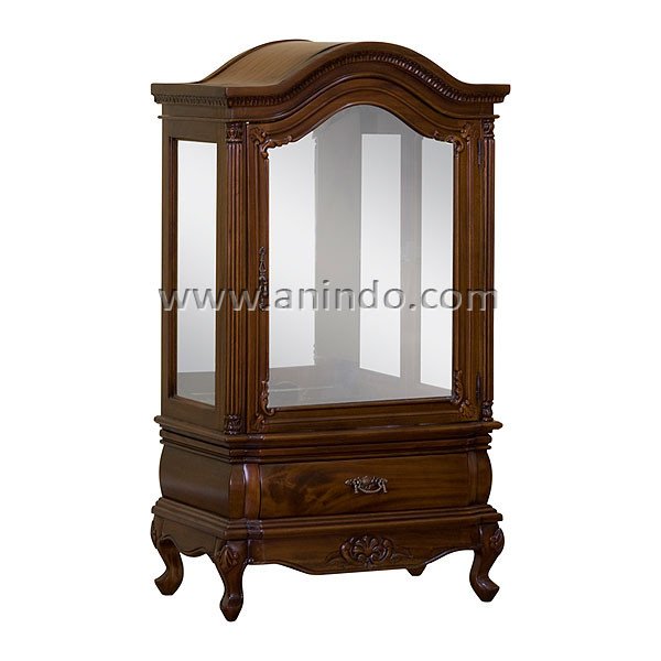 Our glass display cabinet 1 door 1 drawer carving is made of solid mahogany wood in walnut ...