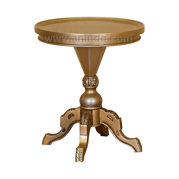 Our?round carved?small table is made of solid mahogany wood in gold painted finish.