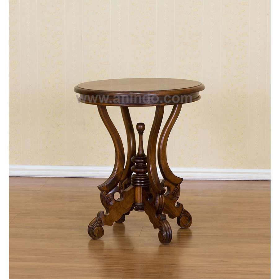 Our round?small table is made of mahogany wood in walnut finish.