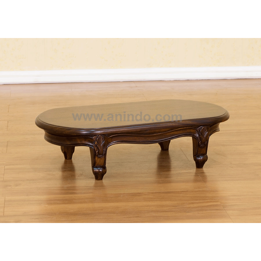 Our mini oval table is made of mahogany wood in walnut?finish.