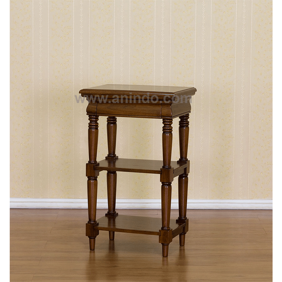 Our square?small table is made of mahogany wood in pecan?finish with double self & drawer.