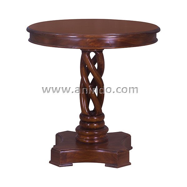 Our round?small table is made of mahogany wood in walnut finish.