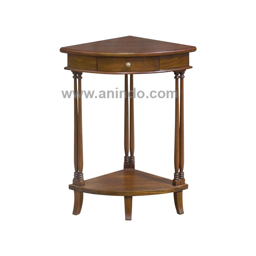 Jack corner small table 1 drawer is made of solid mahogany wood in walnut finish. With antique solid brass hardware.