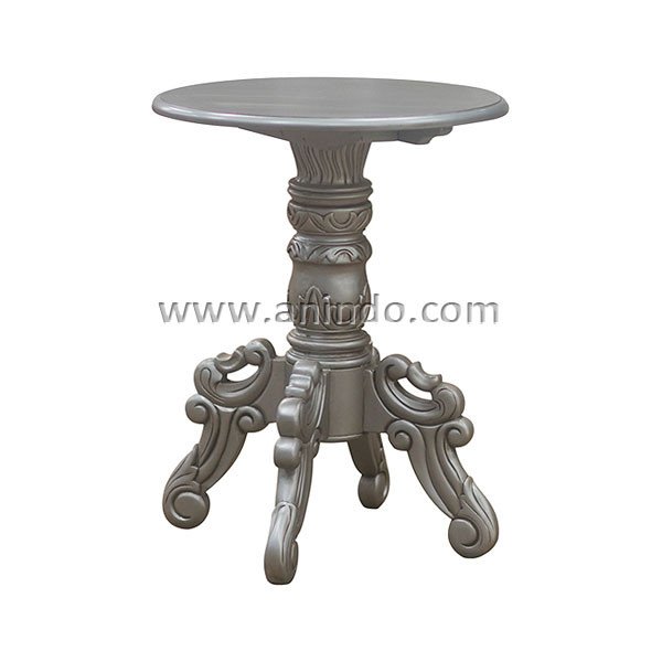 Goat round table is made of mahogany wood in antique silver leaf finish.