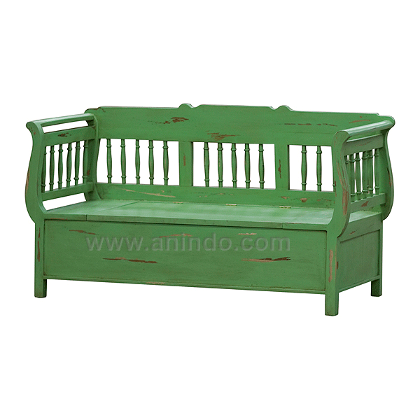 Our?bale mahogany bench is made of solid mahogany wood in antique green finish.