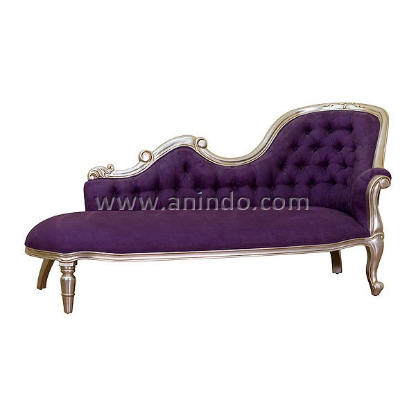 Our?calabar sofa is made of mahogany wood in silver leaf finish. Upholstered in purple velvet fabric.