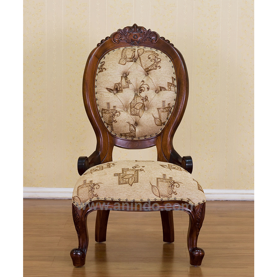 Cameo chair 1 seater is made of solid mahogany wood in walnut finish. Upholstered in brown floral fabric.