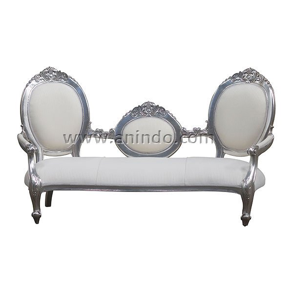 Victoria Sofa is made of solid mahogany wood in white painted combined with silver finish ...