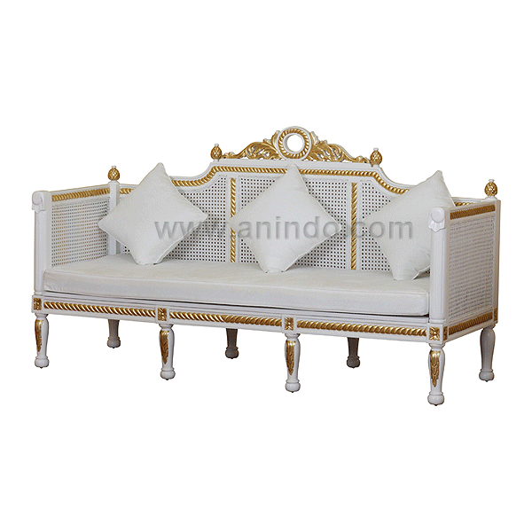 Our banjaran sofa is made of?mahogany wood in white combine with gold painted finish. ...