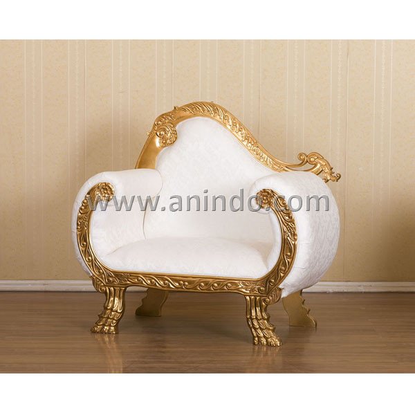 Our wedding sofa 1 seater is made of solid mahogany wood in gold leaf finish. Upholstered ...