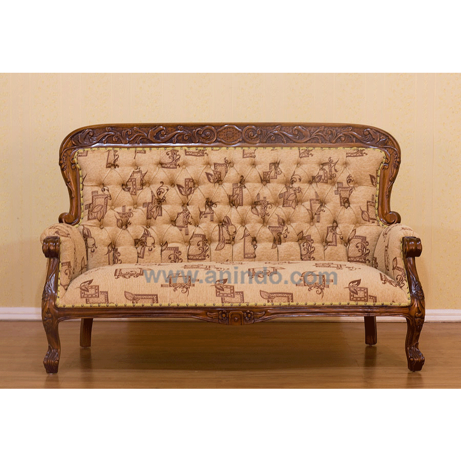 Our?flower sofa 2 seater is made of mahogany wood in?walnut finish. The fabric is 100% ...