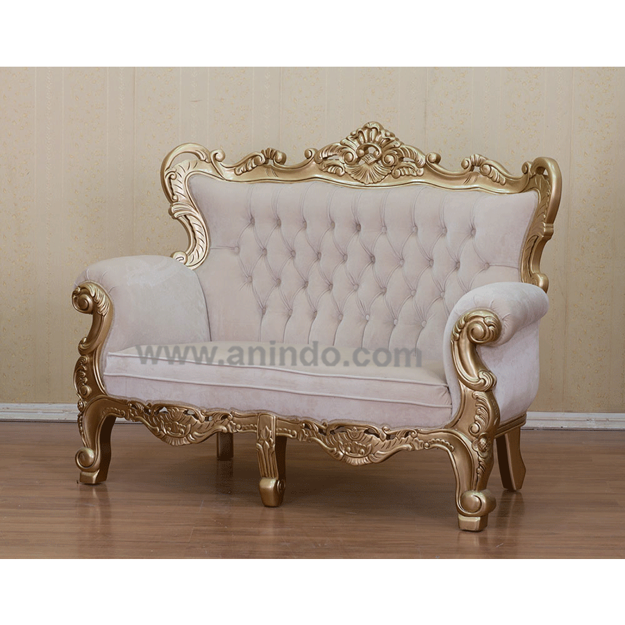Wedding sofa 2 seater is made of solid mahogany wood in gold leaf finish. Upholstered in ...