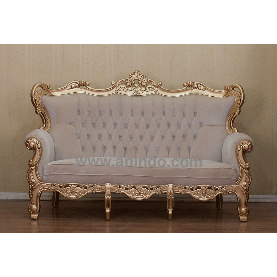 Our wedding?sofa 3 seater is made of mahogany wood in gold leaf?finish. Upholstered in ...