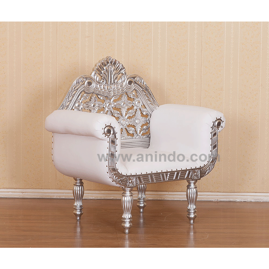 Arti sofa 1 seater is made of solid mahogany wood in silver leaf finish. Upholstered in ...