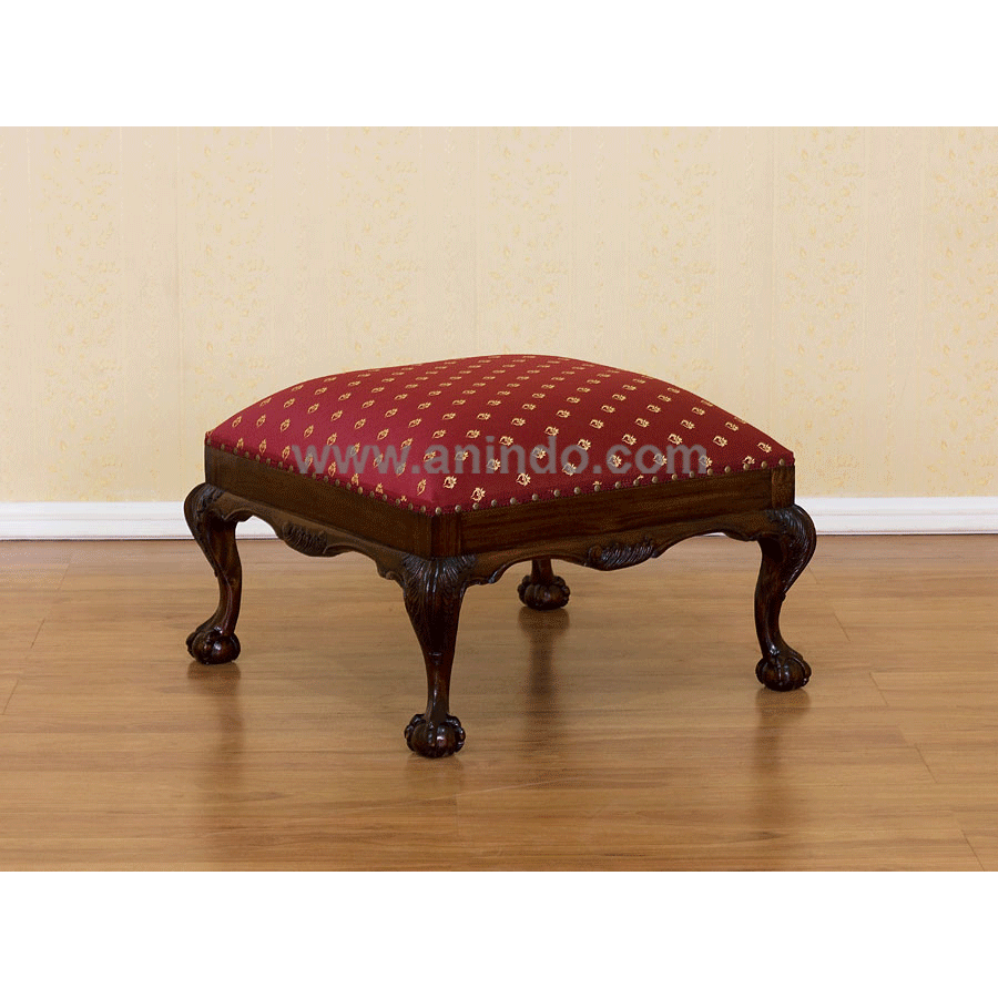 Chippendale leg stool is made of solid mahogany wood in walnut finish. Upholstered in red ...